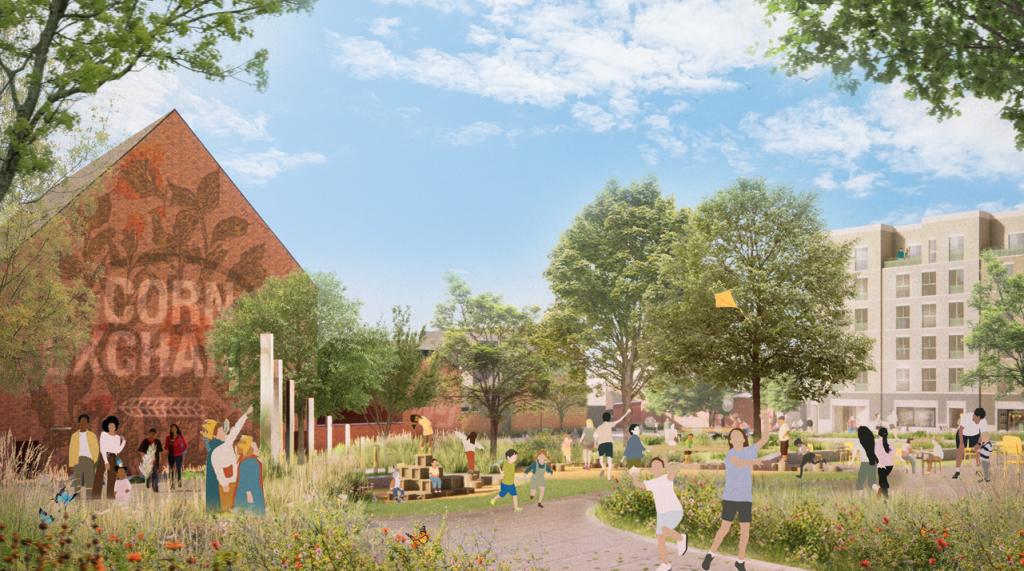 Our vision for Greyfriars also includes new landscaped public spaces connecting the local area back into the town centre, alongside a revitalised cultural offer centred on the refurbishment of the Grade II listed The Parade – which includes the Corn Exchange.